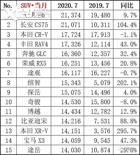 7月SUV销量榜:哈弗H6险失销冠,奔驰GLC超越途观