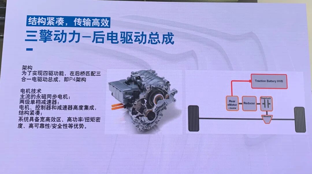 其实让外界很好奇的一点是,天逸PHEV在已经拥有P2电机的前提下,为什么还要做一个P4电机在后桥上?对此,驾仕派分析认为雪铁龙选择业内罕见的P2+P4这个架构主要还是考虑到能耗——由于有了P4电机,P2可以实现充电和驱动的解耦,这样提供了一种“发动机驱动、前电机充电、后电机驱动”的模式,比单纯的P2能够省点电。