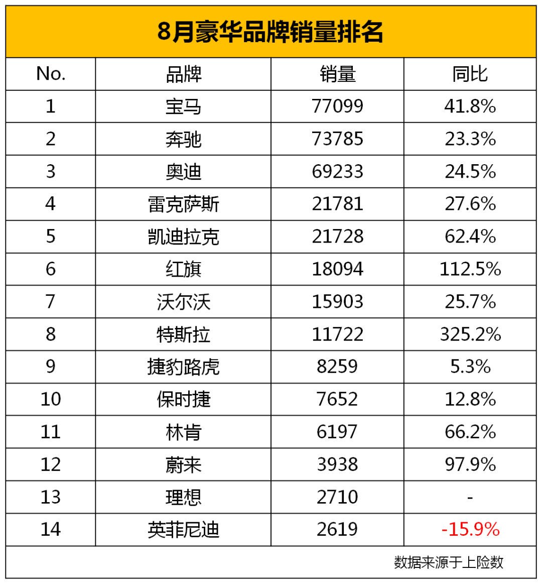8月豪华品牌销量点评,宝马重夺榜首,红旗力争二线“一哥”
