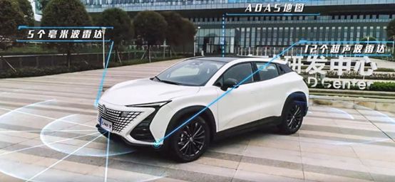 长安UNI-T在传感器硬件上采用了5个毫米波雷达、6个摄像头、12个超声波雷达,感知范围覆盖3个360度车外环境,最大探测距离大于200米,测量精度可达10厘米。