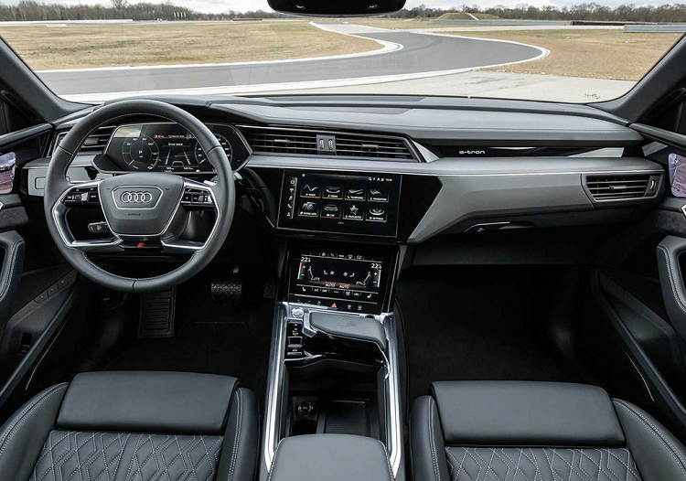 内饰方面,新车与普通版e-tron不同的是,采用了带有“S”标识三辐运动方向盘以及Fine Nappa真皮运动型座椅,运动同时不失豪华感。科技配置上,新车配备了12.3英寸液晶仪表盘和12.1英寸信息娱乐显示屏+8.6英寸空调控制屏幕组成的虚拟座舱。