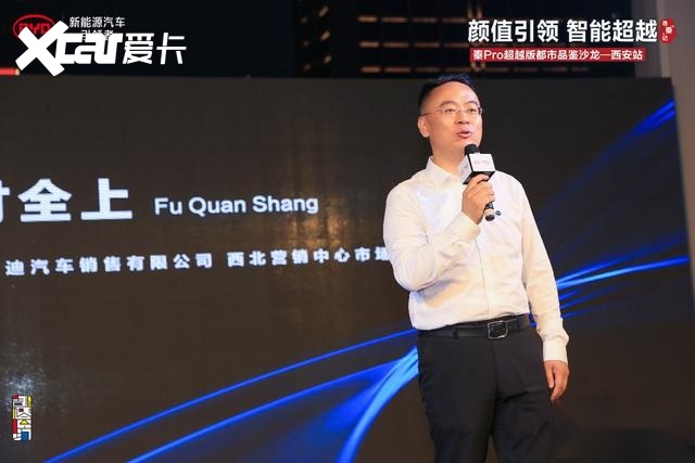 比亚迪汽车销售有限公司西北营销中心市场经理付全上,从品牌引领、科技引领、产品引领三个方系统的讲述了比亚迪作为新能源汽车的引领者,带领中国品牌不断向上的底气和实力。与此同时,西安多家媒体站在消费者的角度,为大家证言秦Pro超越版的出色表现。