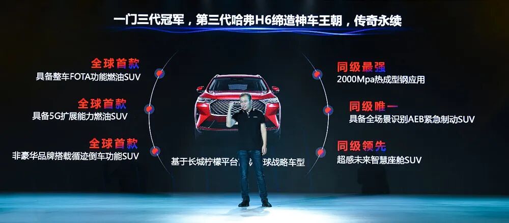 “一身转战三千里,一剑曾当百万师”,在中国SUV市场,配得上这份荣耀的只有“国民神车”哈弗H6(参数|询价)!2011年,自主品牌还在野蛮生成长,谁也没想到,从偏居一隅的保定走出来的哈弗H6会成为中国汽车史上的一个传奇——累计销售300万,连续7年、累计85个月蝉联SUV销量总冠军,连续5年位居全球SUV销量TOP10,成为全球36个国家和地区中国SUV销冠王,并一度创下了月销8万的逆天纪录……更重要的是,哈弗H6还有它宝贵的品牌资产,它是第一个给合资军团立了下马威的国产SUV,它不仅构建了自主品牌的价值体系,也创造了自主逆袭合资的优秀范本。征战沙场近十年,国民神车再次迎来换代。7月24日,第三代哈弗H6现身成都车展,并于当晚发布了预售价(12.2—14.1万元),据了解,于8月上市的新车将与现款车型并存,原因在于,现款车型目前月销2万多,生命力如此旺盛,没有理由退市。满足主流审美的设计,也是好设计在谈论这款车的设计前,赵试先分析下哈弗H6的用户族群:这是中国最主流的社会阶层,他们勤勤恳恳地生活,关注家庭远胜于关注自己,在他们眼中,稳重、大方,不落俗的设计便是好设计。所以,第三代哈弗H6的外形算不上惊艳,但它符合绝大多数普通家庭的共同审美,它追求的不是烟火般的绚丽,而是实实在在让人舒服的“烟火气”。大气、稳健、富有品质感是第三代哈弗H6给人的初印象,前格栅为家族式六边形、叠式中网设计,搭载全新矩阵式LED前灯组;车侧比例相对协调,配以19寸V形轮毂,传递出一种强烈的踏实感,尾部设计简洁,横贯式云桥尾灯比现款车型更有设计感。大方、利落的风格同样延续到新车的内饰设计上,悬浮式双屏错落有致、细长的空调出风口更精致,一体式的中央排挡区保留了必要的物理按键和旋钮式换挡开关,在配色方面,第三代哈弗H6作出了新的尝试,中控和方向盘均采用了古铜色镀铬饰条。当然,车内没有很“炸”的设计元素,但看得出,在做工用料和车内氛围上,它是下了一番工夫的。第三代哈弗H6车身尺寸有明显变化,轴距达到了2738mm,比现款车型增加了58mm ,与目前市场上同级车型相比,空间实用性再次越级,这正是普通家庭看重的高价值点之一。柠檬平台赋能,国民神车有哪些硬实力?成都车展前三天,长城发布了它的全新平台战略,其中重中之重就是柠檬平台,该平台具备模块化强、兼容性高、智能化、全球化四大特点,尤其是扩展性强的模块化优势,对哈弗品牌新车推出速度、新车品质、燃料类型及全球化进程起到了关键作用。柠檬平台赋能,是第三代哈弗H6整体品质硬核进化、制造成本科学优化的基础,涉及新车造型设计、安全结构、空间布局、智能网联、自动驾驶、机械表现等方方面面,而智能化是柠檬平台的内核优势,它包含40+智能模块和上千种功能,可实现FOTA云端升级,今年5G模块开发完成后可直接接入。“智能网联的迭代速度将定义汽车换代的速度”,哈弗品牌总经理王印明用一句话高度概括了长城汽车智能化平台战略的发展方向,他们认为,5G时代,传统的汽车生命周期将被打破,一款车是否有必要存在,是由它的智能化能力水平来决定的,而迭代速度是其能力提升的关键路径。哈弗品牌营销总经理文飞则表示,“未来智能化主要的竞争点在于精准洞察消费者对于智能化场景的需求并实现其定义和功能”,他认为,“智能化的核心是根据需求精准打造,并非创造需求让客户去使用”。聚焦到第三代哈弗H6上,它是是全球首款可实时升级的自主燃油SUV,还将推出“5G-FOTA升日计划”,为车主打造“FOllow TA升日社区”,它重建了“高阶智慧出行“的价值体系,通过三屏(虚拟仪表盘、中控屏、HUD全彩智能抬显屏)无缝互动、哈弗虚拟管家、超全语境、超高识别率的语音交互系统赋予了车辆主动思考的能力,不仅如此,第三代哈弗H6还配备了自动循迹倒车功能、全场景识别AEB自动刹车系统、全自动泊车、智能导航,并新增了通勤路线推荐、精准导航等模式。如果将这些高级配置作价计算的话,这款车已达到30万级合资水准。自动循迹倒车功能值得一提,之前赵试在宝马新3系上有体验过,这项功能的优势在于,它可以在低速控制的状态下,方向盘、刹车、油门不用动,完全实现自主行驶,为了让现场观众能直观体验,展车还表演了“蒙眼真人秀“。安全是哈弗H6的价值基础,魏建军之所以喜欢用一些“出格“的方式来检验哈弗车的安全性,也是基于他对自家产品相当自信。第三代哈弗H6全车高强钢占比高达71.76%,并在门环等隐蔽的地方使用了成本高昂的2000 MPA的热成型钢为加强车辆结构承力,要知道,这只是一款10万出头的平民车而已。在动力总成方面,哈弗H6依然提供1.5GDIT 、2.0 GDIT两种动力选择,匹配7速湿式双离合,核心参数并没有什么变化,但通过热效率提升(38%)、电控增压器全新升级等八项优化,发动机在动力及油耗表现上也得以提升。写在最后正如文飞所言,超越期待,才能不负时代,每一代哈弗H6的问世,都是对传奇的延续,也是对经典的超越,更是对用户价值的全新进化,对数百万个家庭而言,哈弗哈弗H6不只是一款车,更是幸福生活的建设者和见证者。如今,第三代哈弗H6踏上征程,它以研几精进的产品实力、强悍的品牌地位和全新的价值体系,开启国民神车新王朝时代!版权声明:本文为线外邦独家原创稿件,未经授权请勿转载(部分图片来自网络,如有侵权请联系