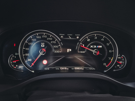 车内与普通X3也是大同小异,细细观察你会发现诸多的M车型专属装备,M组合仪表、M真皮方向盘、M挡杆、红色启动按钮、碳纤维饰条和M运动型座椅等,全部流露出战斗范儿,很难让你去静下心来去温柔驾驶。