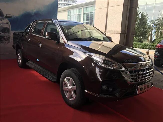 值得一提的是,为了帮助用户最大程度节省成本,新宝典在控油+轻量化方面双管齐下,采用更为强悍的博世第三代控油技术,同时,整车采用轻量化设计,成功减重50公斤,油耗降至7.3L/百公里的行业至低水平。再加上国六标准的加持,更是将单次保养间隔延长到10000公里或6个月,进一步省下了车辆的维护费用。而作为一辆创富皮卡,足够大的货箱容积,足够强的承载能力也是不可或缺的。新宝典将车身加长至5700mm,货箱尺寸增加明显,最大达到1820/1475/500mm,可实现1342 L的超大载货量,远超同级其他车型。同时,为了在保证多拉货的时候拉重货,新宝典领先采用强度更高的七片簧设计,将总承载量提升30%,有效实现了“多拉快跑”。颜值更高 乘坐更舒适新宝典在外观设计方面采用了全新的"X视觉"家族化设计,一改之前方正的造型,看起来更加年轻动感。前脸方面采用倒梯形前格栅,搭配粗壮的亮黑色饰条,与两侧流线型的前大灯很好地融为一体,整体看上去气势十足。而更具张力的雾灯区域造型搭配立体的保险杠,也为整车增添了一些硬汉气息。