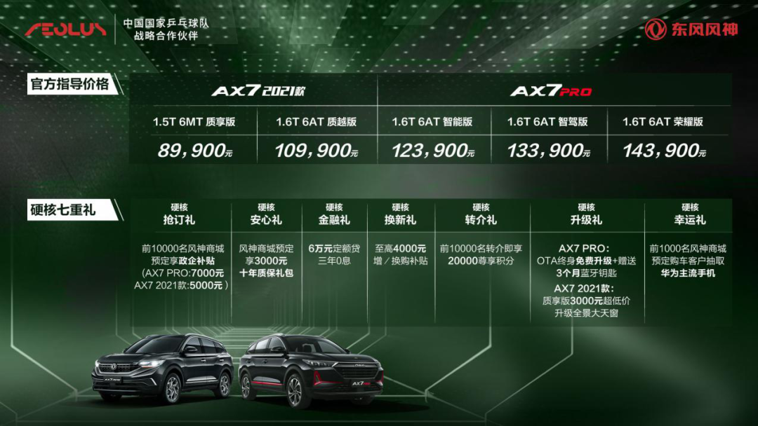硬核,是一种态度。 将刚毅和不屈化作由外而内的强大气场,面对常人无法承受的“极限挑战”。东风风神AX7(参数|询价) PRO上市,更是把“极限挑战”搬到现场,上演“真车秀”戏码。 硬核加码 首先,AX7 PRO接受了“猛士压顶十秒钟”的硬核挑战。AX7 PRO升级后整车高强钢使用比例提升至68.6%的风神AX7 PRO不负众望,面对老大哥东风猛士“泰山压顶不弯腰”,钢筋铁骨不容小觑。 局座张召忠 局座张召忠亲临现场,对此结果给出了“意料之外,情理之中”的赞叹。新车B柱采用1500MPa级热成型钢,而门槛梁采用1000MPa级高强钢,这种钢板每平方厘米能承受10吨以上的压力,其屈服强度相当于3头3吨大象站在指甲盖上而不产生变形。 智慧担当 第二轮挑战者是纠结如何让对手优雅输球的前乒乓国手刘国梁,他带领“地表最强球队”为AX7 PRO量身打造的“智慧三项全能挑战”。 Round 1 两辆AX7 PRO完成自动跟车跟停,在刘国梁主席的监督下不踩刹车停在指定位置,乒乓球队员通过后车窗完成击球,这对拥有ACC-S&G带启停功能的全速自适应巡航和智能领航辅助系统的AX7 PRO来说驾轻就熟,在直行与转向过程中始终居中稳进,则可以在车速30-150km/h的工作范围,保持随时跟停。 Round 2 国乒队员提前藏匿信息,驾驶员不下车不探头的情况下,需要找到信息并读取。即使隐匿信息做的非常小,东风风神AX7 PRO通过360°全景影像的4个超广角高清摄像头,实时生成完整、高清环视鸟瞰图,成为驾驶员的“第三只眼睛”,匹配10.25英寸超清720P电容触摸屏,轻松破译刘国梁主席让对手优雅输球的必杀绝技。 Round 3 智慧升级的WindLink 5.0人工智能车机系统,在智能交互、语音AI能力方面实现全面优化升级,语音识别率高达98%,可以“秒懂”更复杂、更接近人类正常语言结构的指令信息。 高效动力 硬核,不仅是刚毅的外表,更凸显于表面之下的机械素养。第二代EP6 1.6THP发动机与爱信第三代6AT变速器动力组合,让AX7 PRO在动力性与经济性上完美平衡。 标配的第二代EP6 1.6THP发动机,蕴含与宝马同源的博格华纳Twin scroll双流道涡轮技术、Valvetronic可变气门升程技术,再加上博世的Direct Injection高压缸内直喷技术加持,最大功率可达125kW、峰值扭矩250Nm,国六b排放法规要求,而综合工况油耗仅7.0L/100km。 温暖的心