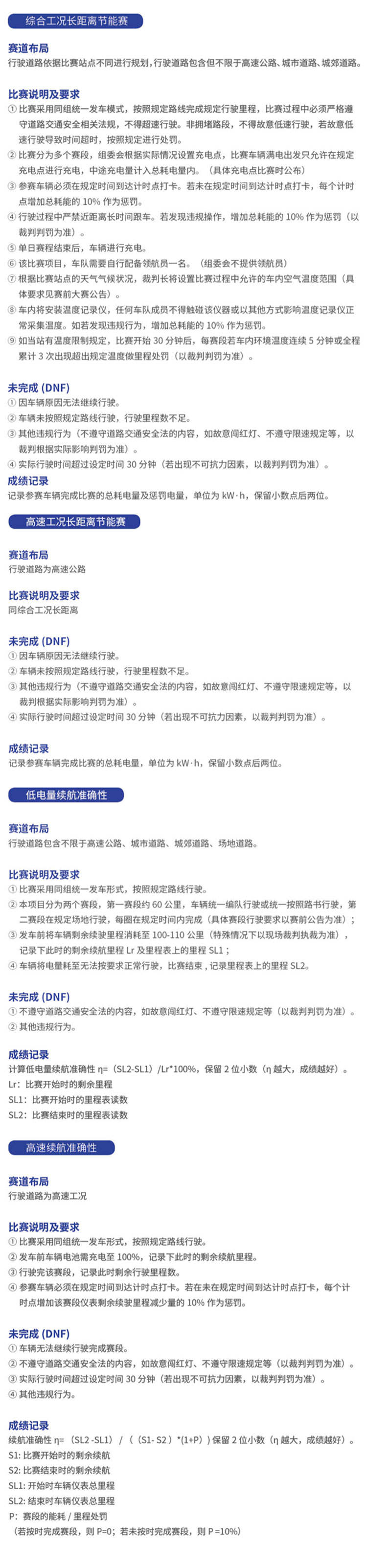 根据参赛车型的级别、售价差异,组委会对所有参赛车辆进行不同组别的划分,具体到赛事中,共分为涉水安全赛、低电量续航准确性、综合工况长距离节能赛、高速工况续航准确性与高速工况长距离续航节能、续航准确性共计六大赛事项目,将新能源消费者最关心的安全、续航等方面着重考察,因此无论是对消费者选买还是对于新车的评价,本站比赛无疑都有着极高的含金量。