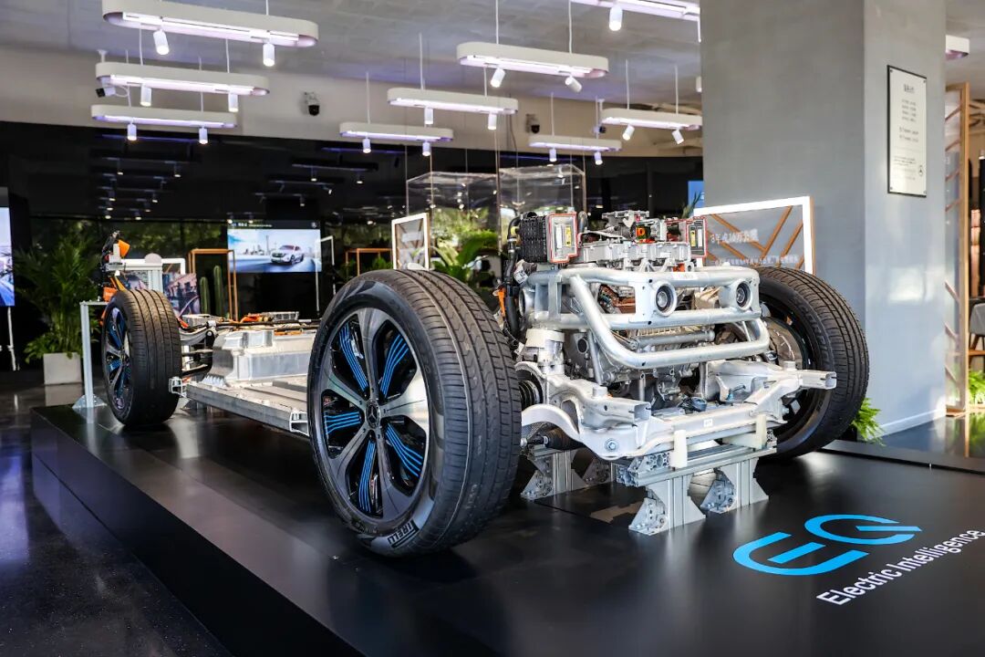 有人认为GLC的白车身限制了EQC的想象力,而且这个用铁笼框起来的前电机组搭配起来是很像燃油车的布局。