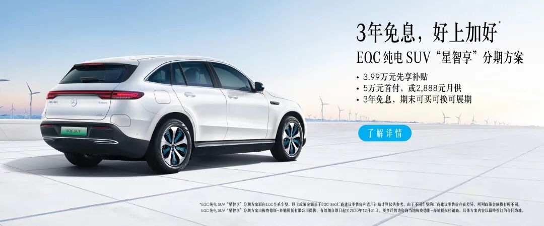 大家普遍认为,EQC吸引的还是信任奔驰、喜欢奔驰,并且打算从油车转纯电车的哪些用户,将近60万元的价格让许多喜欢他的人处于观望状态。所以最近奔驰推出了一套类似于国外LEASEING的3年免息分期方案。