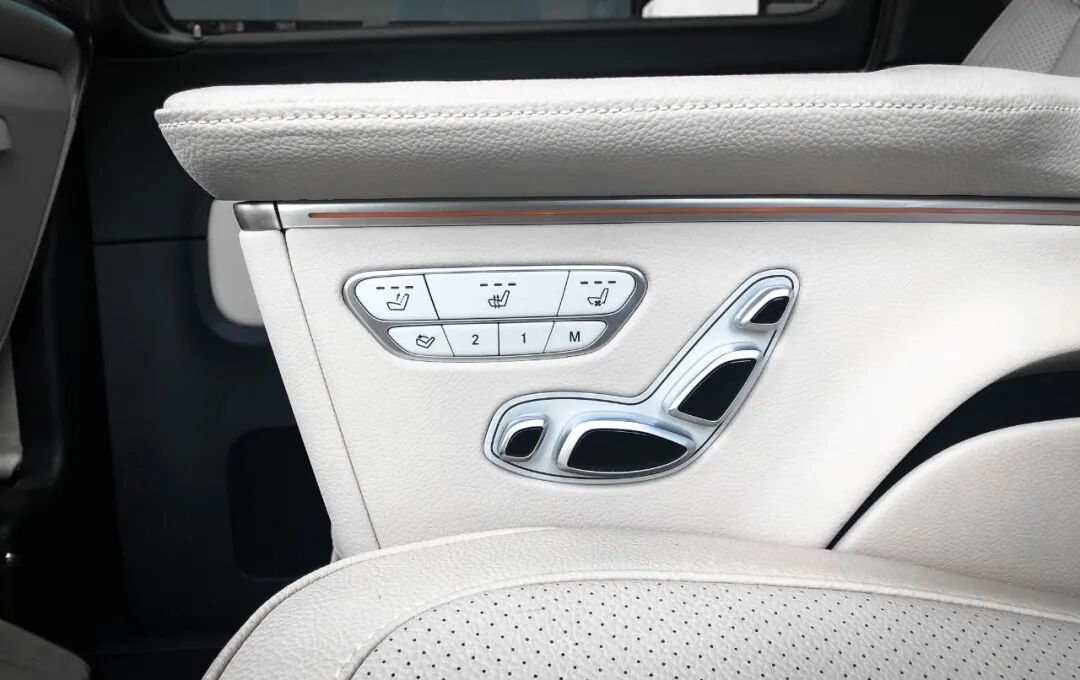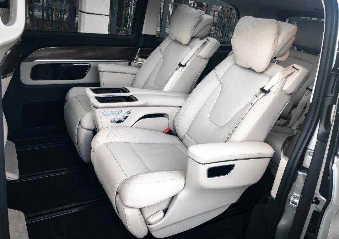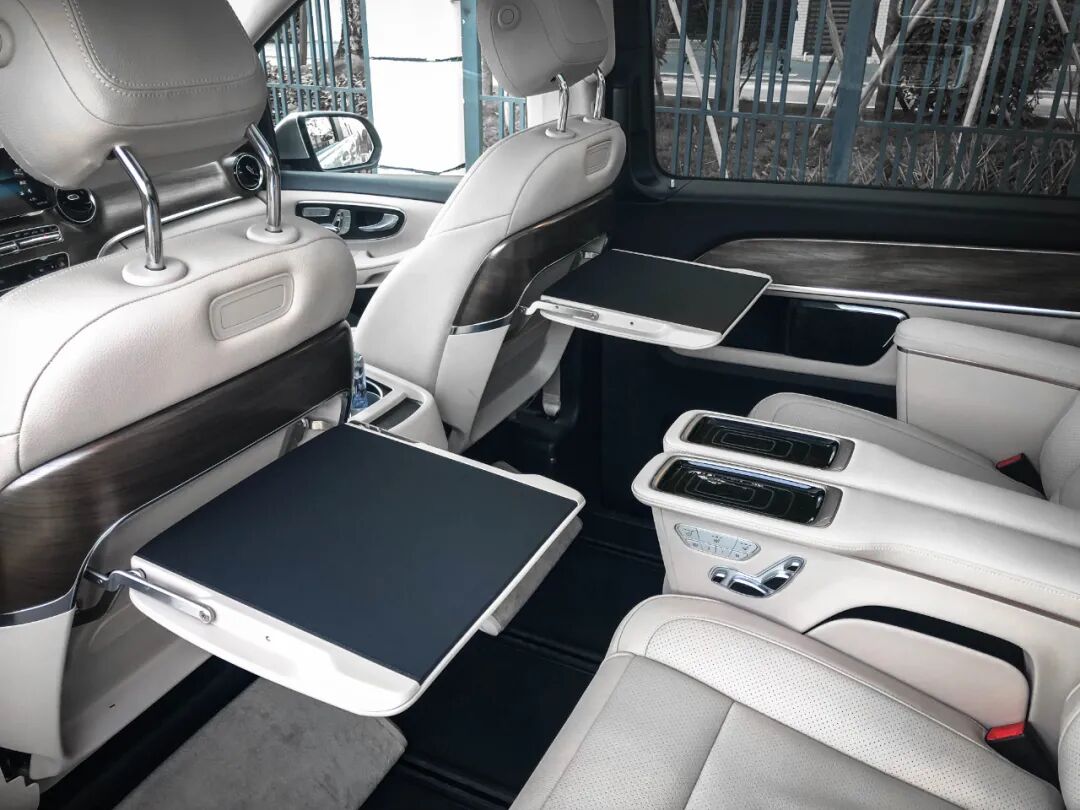 新款奔驰V级的第二排座椅提供了加热、通风、按摩功能,而且电动腿托、胶垫,前置小桌板都毫不吝啬地放进了配置单内。除此以外,第三排还可以掉转头拆装到第二排位置,原第二排座椅后退至第三排位置,组成一个移动的会议室,座椅布局相当灵活。