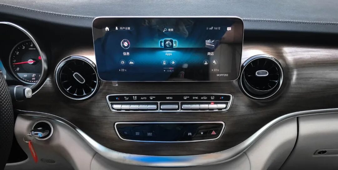 近年,没有大面积的液晶显示屏,好像都不好意思说自己是豪华车型。所以我们看到了新款奔驰V级也与时俱进,增加5.5英寸液晶仪表以及,升级了10.25英寸的中控多媒体触摸屏幕,同时加入了触控和CarPlay/CarLife等实用便利性功能,让全车的科技感得到进一步的提高。比较遗憾的是,车事君试驾新车的时候,只发现Type C接口,而USB接口并没有提供,这个或许是因为欧洲当地的法规要求,而福建奔驰则毫无保留的引进到了中国市场。