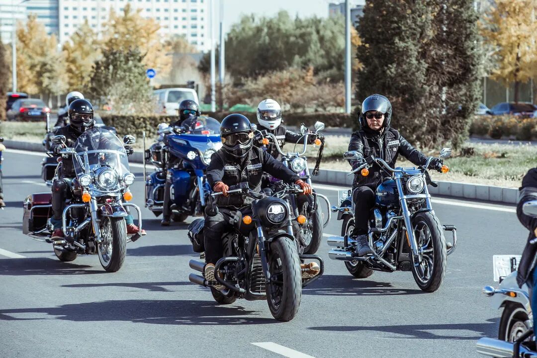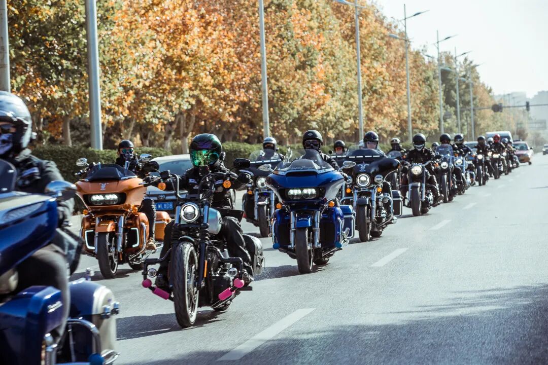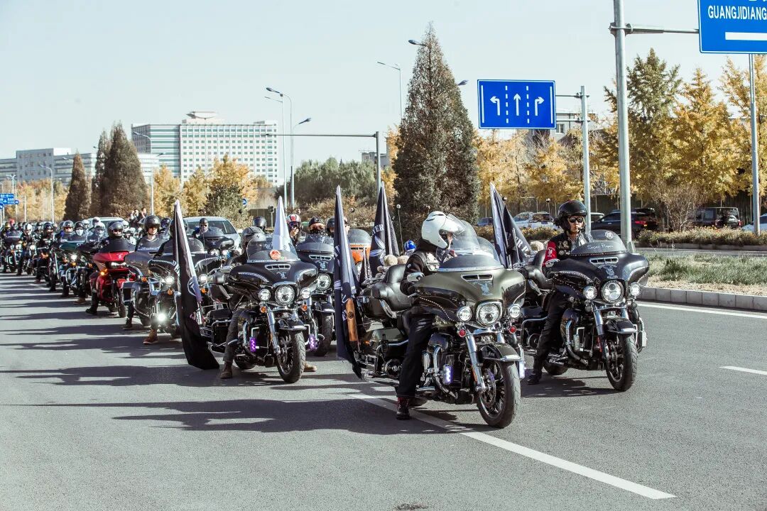 百米的摩托车队拥有非凡的震撼效果,哈雷与印第安这种大排量的美式机车发出的阵阵响声非常动听,既有策马奔腾的快感,也有工业质感的力量。只有身处其中,才会领略到这种独特的震撼与文化魅力。