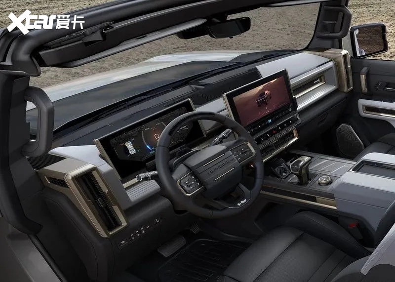 内饰方面,悍马EV以黑白金为主色调,依然坚持大量笔直的线条。12.3英寸的液晶仪表盘和13.4英寸的触摸屏如同水坝般,力量且先进。