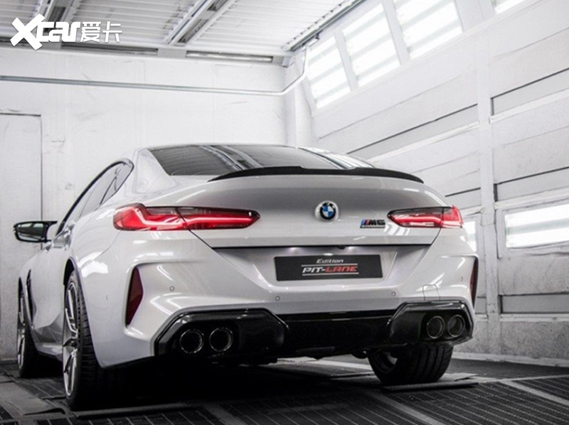 外观方面,新车在普通版M8的基础上对外观多处细节加入了碳纤维套件。比如新车在前/后保险杠、前格栅、进气口、后扩散器、尾翼等处均加入了碳纤维材质。此外,新车还采用了霍根海姆赛道银身涂装,并配备枪灰色20英寸轮圈。