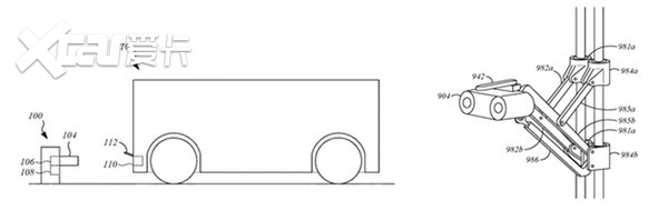 3.车辆自动接入充电站。专利指出,车辆可以自动驾驶到充电站并且自动接入充电,并且充电接口还可以进行上下自动调整,车上的传感器也可以记录发射器的位置,以便更快、更精准地让车辆接入充电。
