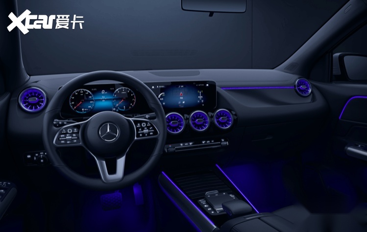 奔驰GLA采用了最新的家族化设计。车内提供三种不同的屏幕组合方式,分别是双7英寸屏幕组合,7英寸+10.25英寸屏幕组合以及双10.25英寸屏幕组合。车机系统全系标配MBUX多媒体影音娱乐系统,并且具备学习功能,