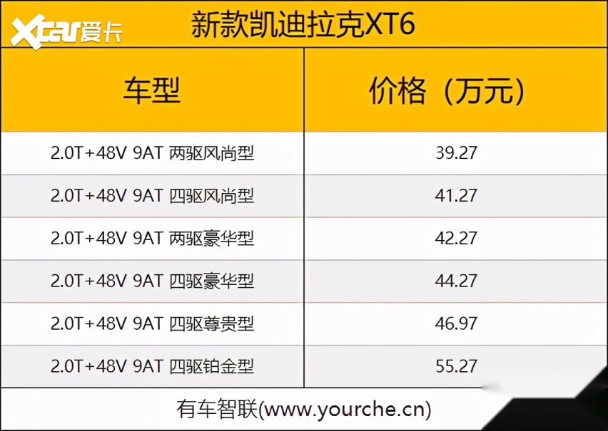 日前,我们从官方渠道获悉,凯迪拉克旗下新款XT5/XT6正式上市,两款新车各推出6款配置车型,其中XT5的售价区间为33.27万-47.27万元。新款XT6的售价区间为39.27万-55.27万元。另外,新车全系都将增加48V轻混系统。
