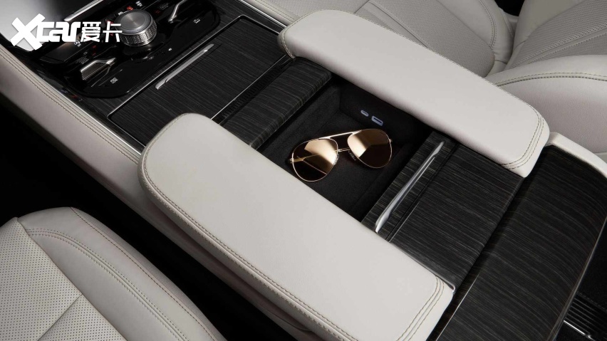 采用旋钮式换挡,附近的换挡区域一些小细节。比如又大又宽的中央扶手箱,最上面还有一个小空间,将其打开放一些类似太阳眼镜的小物品绰绰有余。