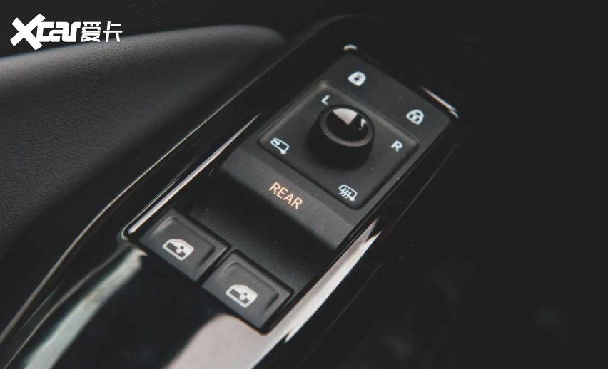 想要开启后窗,正确做法是先按一下“REAR”,亮起黄灯,然后下面那两个按钮就可以控制两扇后窗的升降了。