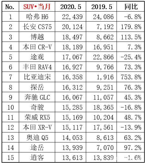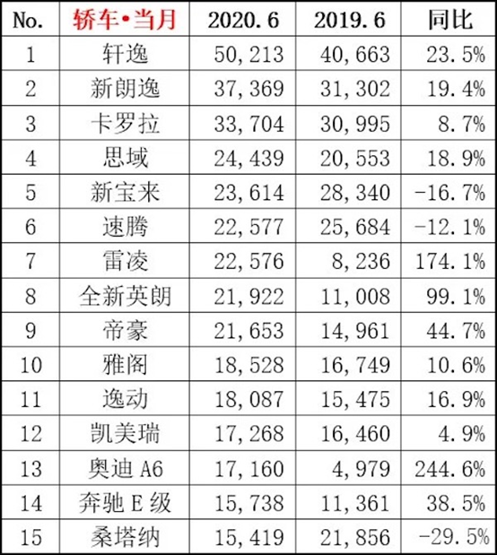 根据乘联会最新统计,6月乘用车销量完成176.4万辆,环比增长5.4%,同比增长1.8%。从细分市场来看,SUV销量已超过轿车,同比继续呈现两位数增长,轿车、MPV仍然呈现负增长。下面我们从各细分市场的前十五名分析,希望对大家后续买车有一个帮助。