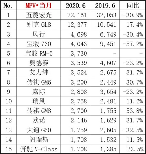 这些车卖的最好 6月各细分市场前十五名解析