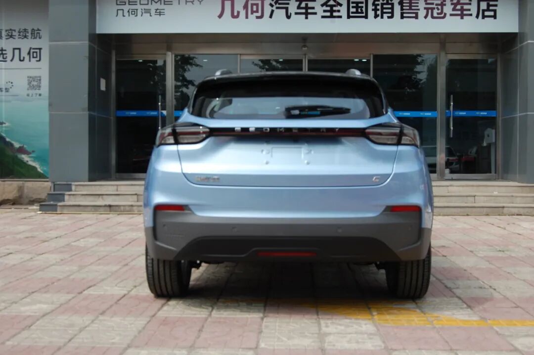 本周五,几何汽车品牌旗下的第二款车型——几何C(参数|询价)就要正式上市了,它也是该品牌旗下首款纯电动SUV。在此前的2020粤港澳大湾区车展(2020深圳车展)上,几何C正式开启预售,预售价格为13.98万元起。红点新能源小编近日来到位于北京的几何汽车品牌4S店,抢先体验这台颜值出色的纯电动SUV。外观设计牢牢抓住年轻消费趋势几何C依旧沿用了几何A(参数|询价)上的“多维流动生命体能量”设计语言,这套设计风格在一台SUV车型上,体现出了与轿车完全不一样的味道,用在几何C上显得更加协调,将颜值提升到了一个新的高度,相信能轻易俘获当下众多年轻消费者的芳心。几何C的前格栅采用封闭式设计,并与两侧矩阵式LED大灯组融为一体,上方LED日间行车灯还拥有流水的动态效果。保险杠两侧的贯通式进气孔并非装饰,除导流外还起到为前刹车散热的作用。几何C的车身侧面线条非常流畅简洁,采用时下流行的悬浮式车顶设计,前翼子板处还有“e600”,表示这是长续航版本车型。除此之外,几何C还采用了与几何A相同隐藏式门把手,搭配溜背式的整体车身造型,使几何C拥有0.237Cd的超低风阻系数。几何C车身侧面,最吸引眼球的其实是其战斧式铝合金轮毂,内部搭配荧光绿的刹车卡钳,轮胎采用来自米其林的PRimacy 4轮胎,尺寸也达到了225/45 R18,搭配其独有的“元气蓝”车身配色,将年轻时尚的感觉体现的淋漓尽致。几何C的车尾采用“上窄下宽”的整体造型,看上去非常有力量感。贯穿式LED尾灯组非常具有设计感,解锁车辆时,头灯和贯穿式尾灯从中心向两侧呈流水式点亮,有着很强的仪式感。内饰设计依然很“几何”几何C的内饰几乎与几何A完全一致,极具科技感和未来感。其中MINI的中控液晶显示屏、HUD抬头显示、旋钮式换挡和E-touch超感触控区均得以保留。不同的是,几何C搭载了12.8英寸中控屏内集成了GKUI 19吉客智能生态交互系统,这是一大突破和科技亮点。在配置方面,几何C搭载了L2+智能驾驶辅助系统,该系统集成了ICC智能领航系统、ACC S&G启停式自适应智能巡航系统、LKA车道保持辅助系统、FCW前碰预警+AEB自动紧急刹车系统、LDW车道偏离预警系统、BSD盲点检测系统、SLIF限速识别系统等功能,可实现0-150km时速间的跟随前车行驶和车辆起停。不仅如此,几何C还配备了非常柔软舒适的皮质座椅,座椅的填充物非常饱满,不仅坐的非常舒服,两侧的包裹与支撑性非常不错,长途驾驶也不会感觉疲劳。当然,如果你还是喜欢几何A上的织物座椅,几何C也是提供选装的。几何C的车身长宽高分别为4432×1833×1560mm,轴距为2700mm。小编身高1.75米,前排调整好舒服的驾驶坐姿后,无论是横向还是纵向的空间均非常宽敞,加上非常舒服的座椅,坐在前排简直是一种享受。来到后排,得益于其2700mm的轴距,后排腿部空间也非常不错,中间地台隆起也比较小,同时后排靠背的角度也比较大,整体坐姿非常舒服,唯一美中不足的是,由于采用溜背式的造型,后排头顶即便采用了内凹的处理,但头部空间仍然不太理想。“简单试驾”总结驾驶感依然出色动力方面,几何C搭载来自于日本电产的电机,最大功率为150kW,峰值扭矩为310N·m,并会提供400km和550km两种不同续航版本的车型。快充模式下,从30%-80%只需要半小时,慢充则需要7.5小时。由于在室外,车辆停放的位置不利于拍摄,所以红点新能源小编只能自己挪车,因此简单的开了一下。几何C依然延续几何A非常好开的特性,电门踏板和转向手感非常轻盈,女性车主驾驶起来也毫不费力。此外,值得一提的是,小编在拍摄完停进车位的时候,发现几何C的倒车影像显示效果非常出色,正常倒车入库进本不需要再回头看后视镜了。不仅如此,几何C还配备了540°AR底盘透视功能,可以清晰看到车底的盲区,全方位观察车辆状态。红点评车由于此次只是在4S店进行静态实拍,所以我们并没有深入的去体验几何C的动态表现,具体动态表现待小编拿到试驾车再进行详细的测评。仅从静态部分来讲,几何C延续了几何品牌一贯精致、简约的设计思路,无论是整车的设计还是车身颜色的搭配均对当下年轻人的拥有很强的杀伤力,从公布的预售价来看,几何C也尽显满满的诚意,相信上市之后一定会有非常不错的市场表现!