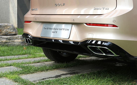 车辆尾部同样拥有出色的黑化元素,后杠下方采用了黑色装饰板,并且镶嵌有模拟双边共四出排气。虽然真实排气采用隐藏式设计,但是从模拟的排气造型与样式上来看已经达到了彰显动感的作用。