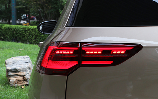 尾部灯光是车尾最出色的一处设计,也是相比上一代车型尾部变化较大的地方。采用了更加狭长简约的设计,且实拍车型采用全LED光源,还集成了动态转向灯功能。