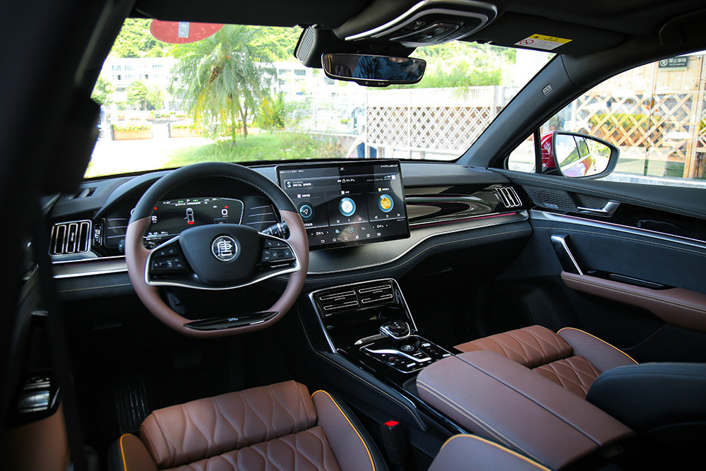 内饰方面则采用了全新的设计,与刚刚面世不久的比亚迪汉(参数|询价)的内饰风格一脉相承,科技感、潮流感十足的同时,也通过高档的用料、稳重的配色和扎实的做工,凸显出相当程度的高级感。毕竟新款车型内饰是由前奔驰内饰设计总监、现比亚迪全球内饰设计总监米开勒·帕加內蒂操刀的,所以在豪华感这块的提升是相当明显的。