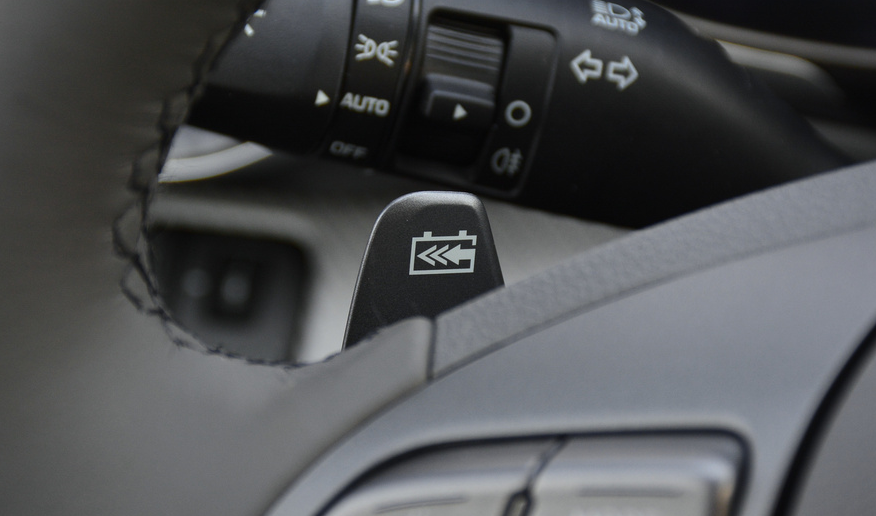 这里还需要重点提及一个功能,那就是菲斯塔纯电动还在方向盘左右两端全系配备了动能回收拨片。它总共分为0、1、2、3共四个档位,操作类似于换挡拨片,左边是加挡,右边是降档。