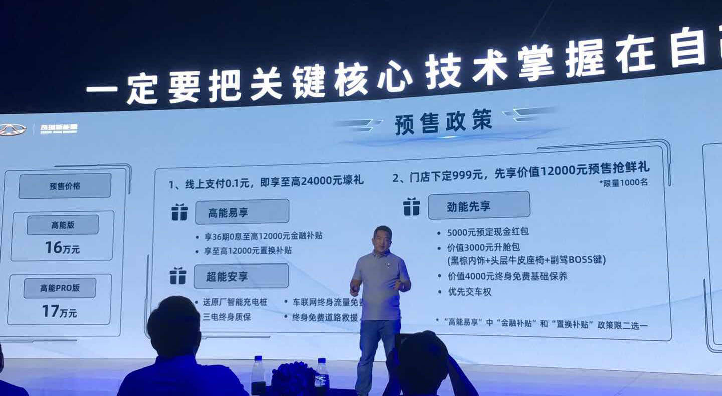8月28日,邦老师受邀参加奇瑞新能源@LIFE平台及蚂蚁(参数|询价)预售发布会。会上,奇瑞新能源公布了蚂蚁的预售价——16-17万元,同时预售期还能享受36期免息等金融政策以及免流量费用等多种优惠政策,详细信息见下图。而蚂蚁定位为纯电动中型SUV,采用全铝车身设计,综合续航里程为510公里。