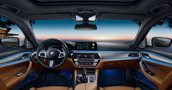 内饰整体造型依旧保留了宝马原有的味道,用料以及做工都值得夸赞,中控台、两侧门板处都由大面积的软性材质和皮革包裹,彰显了十足的档次感。科技配置方面,宝马5系的表现也丝毫不含糊,12.3英寸全液晶仪表、10.25英寸悬浮式中控屏均为标配。目前2020款车型的中控屏幕中还更新了iDrive 7.0系统。