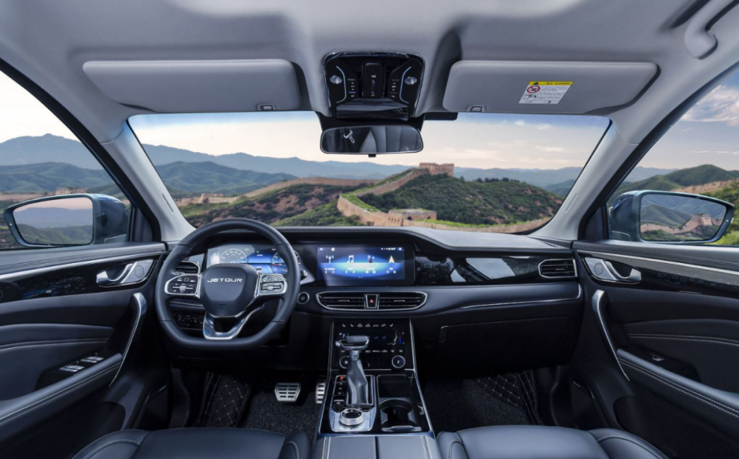 内饰方面,全新一代捷途X90也是比较的有科技感。直接标全新标配双12.3英寸一体式连屏,新车的方向盘采用经典三幅式方向盘,在方向盘也是用镀铬加以装饰,在中控台上捷途更是用黑色饰板加以装饰。