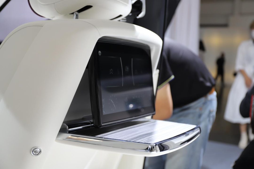 坐在后排老板座位,调节好坐姿,按下位于前排座椅上面的按键,小桌板自动打开,屏幕缓缓伸出。便可以尽情享受由Bespoke高级定制音响以及18个扬声器传出的演艺厅般的听觉享受,如果感到口渴,还可以从车载冰箱中拿出一瓶82年的拉菲,岂不乐哉。