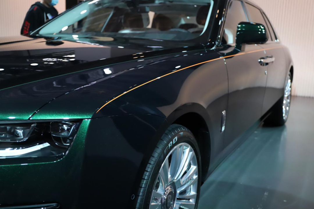 在这里,我们需要重点说一下位于车身两侧纯手工绘制的金腰线,纯手工打造,使用英国红松鼠毛制作的画笔才能完成,全球仅一人授权。好看是好看,但是千万别尝试去扣下来或者抛光,或许这一抠,就从你口袋里扣掉一辆国产车!