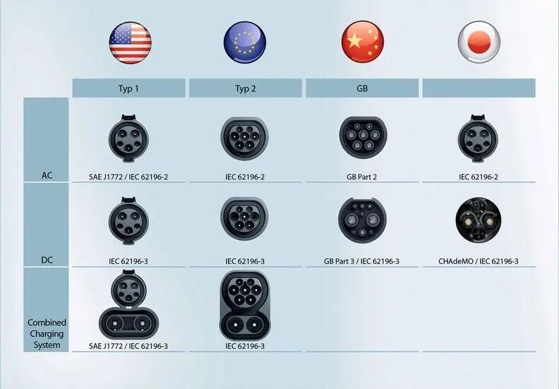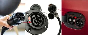 就像电器中的的电源插座和插头一样,电动车的充电接口与充电桩插头也会根据国家地区不同而有所区别,区别如下图。 (图:美国、欧盟、中国、日本充电接口的不同) 其中AC是“交流电”,DC是“直流电”,分别对应了快充和慢充,若觉得不好区分,记住:“孔少的就是快充,孔多的就是慢充”就行了。而在特斯拉车上,两种充电口都在一个位置。 (图:特斯拉的两种充电口,左侧为“直流电快充”,右侧为“交流电慢充口”) 早期进口型的特斯拉也基本使用欧标充电口,除了充电口的样子不一样外,还有接口的区别。 (图:欧标的充电接口,里面是有金属芯的,其实更像中标的充电桩插头) 欧标和中标的充电设备是完全相反的,欧标车上的充电接口,里面是有金属芯的,更像是中标的充电桩插头。而欧标的充电桩插头,更像是中标车上的充电接口,里面有金属套筒,并且欧标比中标的尺寸还要大一些。 (图:左侧为欧标充电桩接口,右侧为中标充电桩接口,欧标比中标的尺寸还要大一些) 解决的办法: 目前新修建的充电桩已经全部采用国标,对于欧标接口的特斯拉有充电上的难题,但接口转换器可以解决充电的问题。 (图:充电接口转换器) 早期的特斯拉会送车主一套接口转换器,其实没有也可以自行购买,而国产的Model3已经全部使用中标,完全没有这个担心。 以上是小编为大家收集总结出来的用车小知识介绍,仅供参考使用。若有其它想要了解的用车知识,或者意见建议,欢迎在下方评论留言给小编。