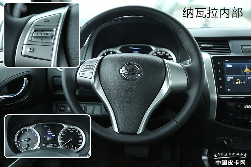 两车均配备了多功能方向盘,纳瓦拉可以在方向盘按键处控制液晶仪表的功能。D-MAX的控制按键则比较多,包括多媒体调节,以及纳瓦拉不具备的定速巡航功能。仪表盘两车相差不大,都是机械指针+小尺寸液晶屏的样式。