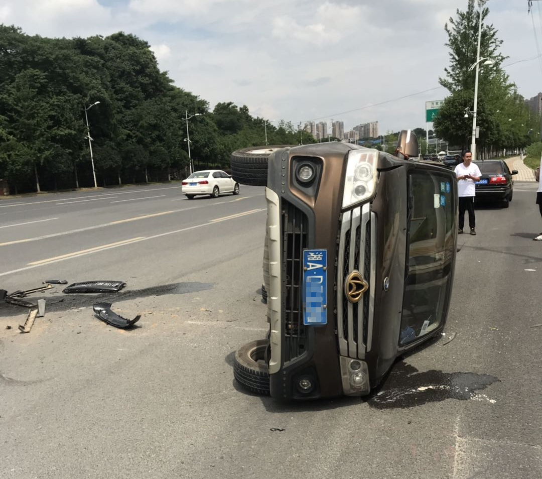 7月5日,湖南长沙街头,一辆贴着宝马标的长安微型面包车在直道忽然越双黄线左转。对向一台车躲闪不及,拦腰撞上。长安被撞至侧翻,两台车都损失惨重。