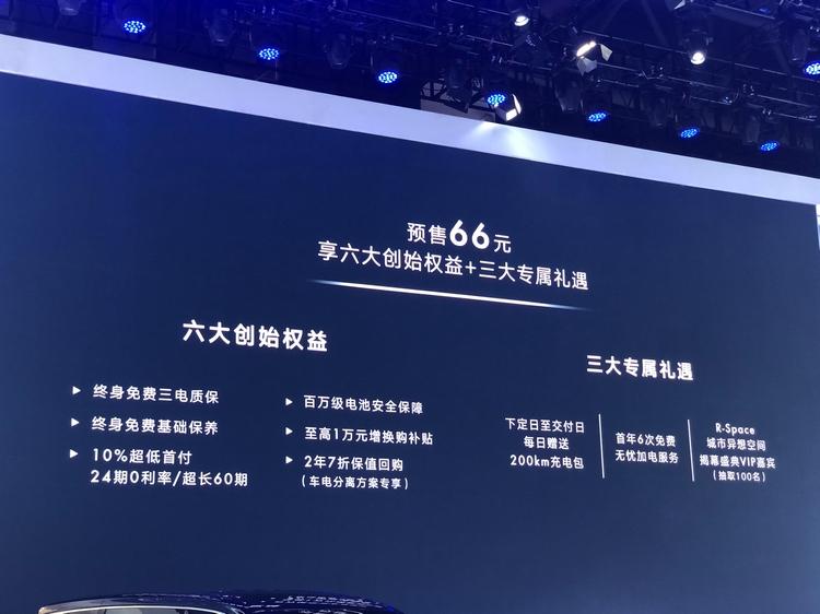 荣威R品牌旗下首款纯电轿车荣威R ER6于本届成都车展正式亮相,以16~22万元的价格展开了预售活动,同时发布了“预售66元”等多项优惠。