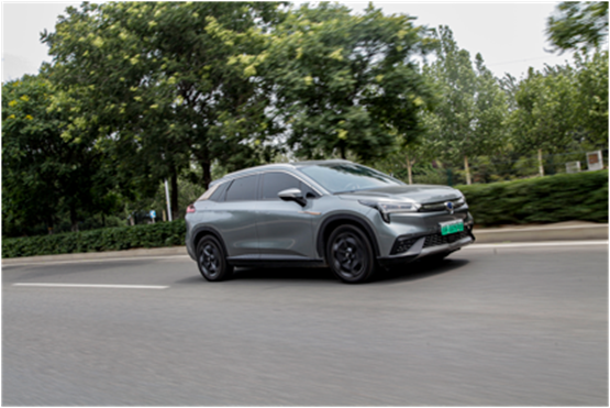 先来说说这套动力组合吧,本次试驾的是埃安LX 80系列入门版车型,采用前置前驱单电机+固定齿比单速变速箱的动力组合,采用三元锂电池组,永磁/同步电机,NEDC续航里程650公里。