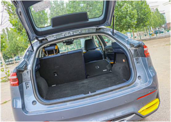 车辆后备厢拥有十分平坦的地板,离地高度较高,并且下方有个突出的遮挡导致拿取重物时会有一些不便,但是无论是储物空间还是储物灵活性都比较出色,后排座椅支持比例放倒。