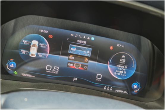 全液晶仪表内显示丰富的信息,并且拥有多种主题可供选择,内部读数较为清晰。全液晶仪表固然起到了提升车辆科技感与氛围的作用,不过遇到强烈光照会出现一些反光导致看不清读数。