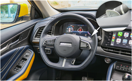 方向盘上带有丰富的多功能按键,采用平底式设计带有皮质包裹,还带有换挡拨片,充分体现出车辆的动感化设计。