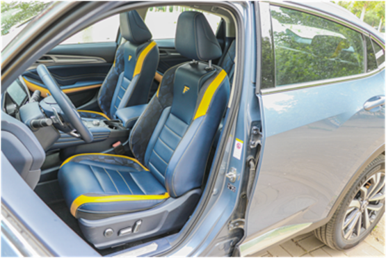 车内座椅同样采用皮质包裹,乘坐舒适性可观,主副座椅支持电动多向调节与加热,并且主驾带有座椅通风。