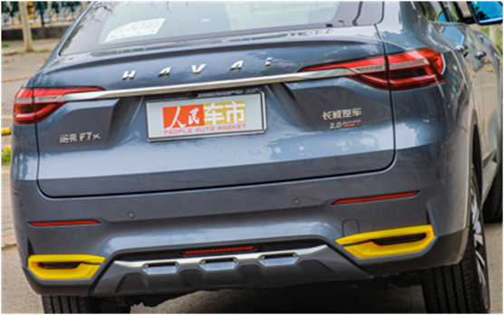 尾部灯光造型采用与车头相呼应的设计,很好的通过棱角与线条融合在车尾。尾部中央HAVAL字母LOGO与贯穿式的镀铬条提升车尾的设计感,车尾还带有上翘的鸭尾设计,体现车辆的动感。