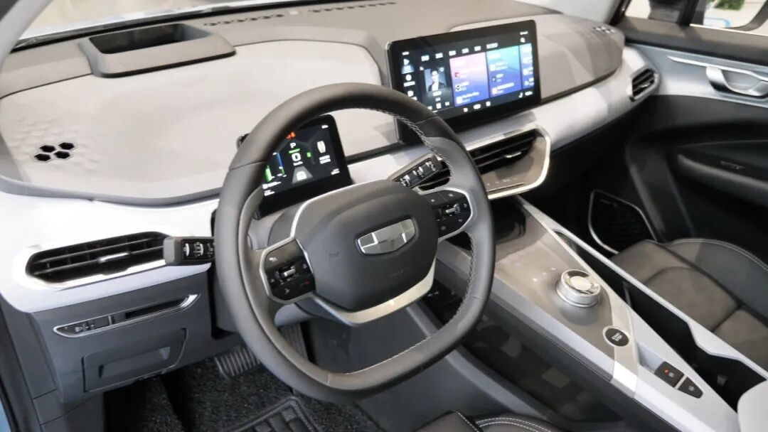 除此以外,它给你的质感也很高。例如中控台的设计看似很简约,细究后你会赞叹:为何它能够做到这样的效果?又如大屏幕,它的画质高清而且系统反应快。车事君拍摄的车型版本内饰为灰色,这一点相比几何A那套内饰在视觉上要普通,但是更易打理。