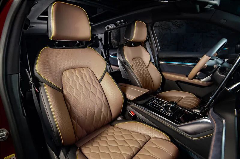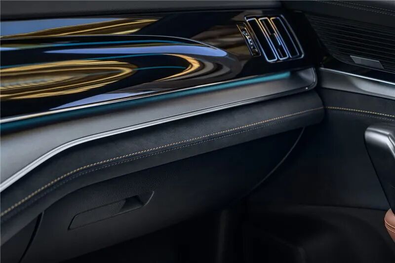 中控覆盖Ultrasuede超纤高档类麂皮面料,2mm精奢双色缝线,质感不输百万级豪车;被称为“龙爪之痕”数字面板极具个性,加之31色交互式智能座舱氛围灯,科技感十足;根据人体工学全新开发的龙鳞纹豪华真皮座椅,更贴合亚洲人的身体曲线,兼具舒适性和豪华感。