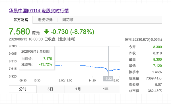 据2020年华晨第一季度业绩报告显示,其总负债1226.75亿元,资产负债率高达69.93%,远超行业平均水平。另一方面,从今年7月份以来,部分债券开启了连续下跌的模式。到了8月12日,华晨汽车旗下多只债券突迎暴跌,最大跌幅近20%。8月13日,华晨汽车旗下的港股上市公司华晨中国突然“闪崩”,一度暴跌超13%,最终收跌近9%,全天放量。