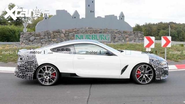 外观方面,测试车的车头与车尾都利用伪装贴纸覆盖,整体造型与宝马8系没有太多差别,下侧为三段式开口设计。车身侧面,测试车采用了双五幅轮圈,内侧为大尺寸刹车盘与红色卡钳。细节方面,新车但的后三角窗被黑色覆盖,尚不明确有何作用。
