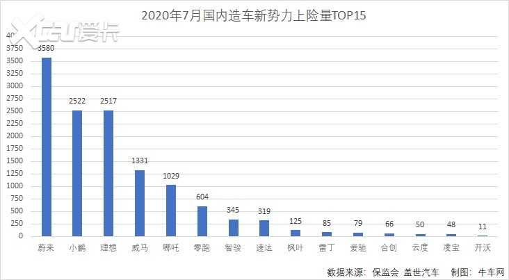 从单个企业来看,率先推出3款量产车的蔚来仍雄踞造车新势力7月上险量排名榜首,且与第二名的差距达到1058辆——几乎与7月国内造车新势力上险量TOP15中后9位上险量之和(1128辆)相当!